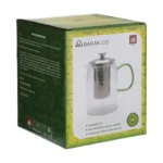 _ گنجایش ۹۰۰ میلی لیتر _ قطر دهانه ۸.۵ و ارتفاع ۱۵ سانتی متر _ مقاوم در برابر حرارت و قابل قرار دادن بر روی حرارت مسقیم _ دارای صافی و درب ساخته شده از استیل ضد زنگ _ وارداتی